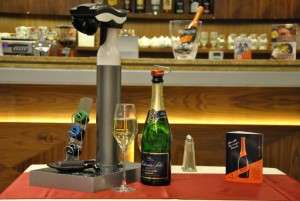 Základ je koupit si šampaňské (smích). Musím mít speciální špunt neboli zátku, která pomocí ventilku a napuštěného plynu uzavírá otevřenou láhev sektu. Ventilek funguje úplně stejně jako ventilek u kola. Druhou částí je zdroj CO2. Ten může být buď ve formě malé ruční pumpičky, dejme tomu na domácí použití, nebo, pro větší píče, ve formě stojanu s pumpou. Uvnitř je bombička s oxidem uhličitým, který se vytlačuje použitím vnější páčky. Je to předělaný výrobník sodovky. Větší zdroj se hodí do restaurací a barů, ale i lidem, kteří mají vinotéky doma. Díky tomu si otevřou vícero druhů šumivého vína a ekonomicky to pro ně bude výhodnější.