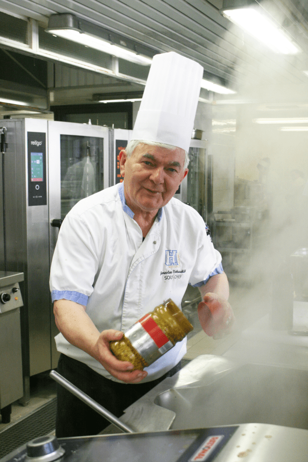Náš šéfkuchař, Jakub Doležal je velkým nadšencem pro gastronomii. Do nabídky zařazuje neustále nová moderní jídla a pečlivě sleduje trendy. Takže dnes máme například širokou nabídku asijských jídel. Podporu máme také v našem technologovi – Dušan Svoboda je bývalý šéfkuchař z francouzské restaurace Art Nouveau v Obecním domě a poskytuje nám výraznou pomoc při tvoření jídelních lístků. Nemohu neuvést bývalého šéfkuchaře pana Jaroslava Vokrouhlíka, který zde odvedl obrovský kus práce. Je to specialista na českou kuchyni, který nemá konkurenci. Působí zde od roku 2010 a i přes svůj důchodový věk je nám velkou oporou. Nadále pracuje v kuchyni, vaří s kuchaři a dělá jim mentora. Zároveň vzdělává nově příchozí kuchaře. Udržet kvalitu české kuchyně stojí na dodržování technologických postupů a na to je pan Vokrouhlík mistr.